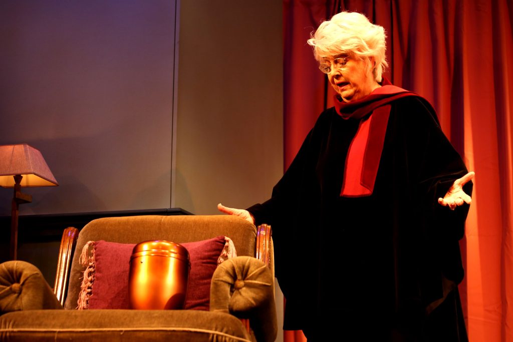Hra se odehrává v jedné trochu pomatené rodině. Svérázná paní plukovníková se rozhodne, že si urnu svého právě zesnulého manžela odnese domů, což vnukne jejím potomkům nápad, jak se zmocnit dědictví po svém otci…
